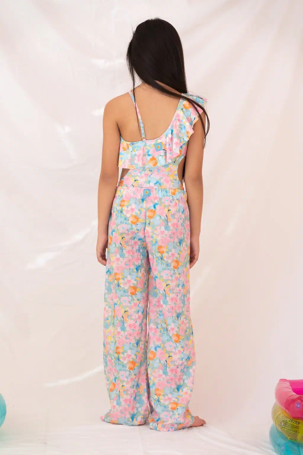 Ανανεώστε τη beachwear συλλογή με αυτό το αέρινο και κομψό παντελόνι σε πολύχρωμο φλοράλ σχέδιο.