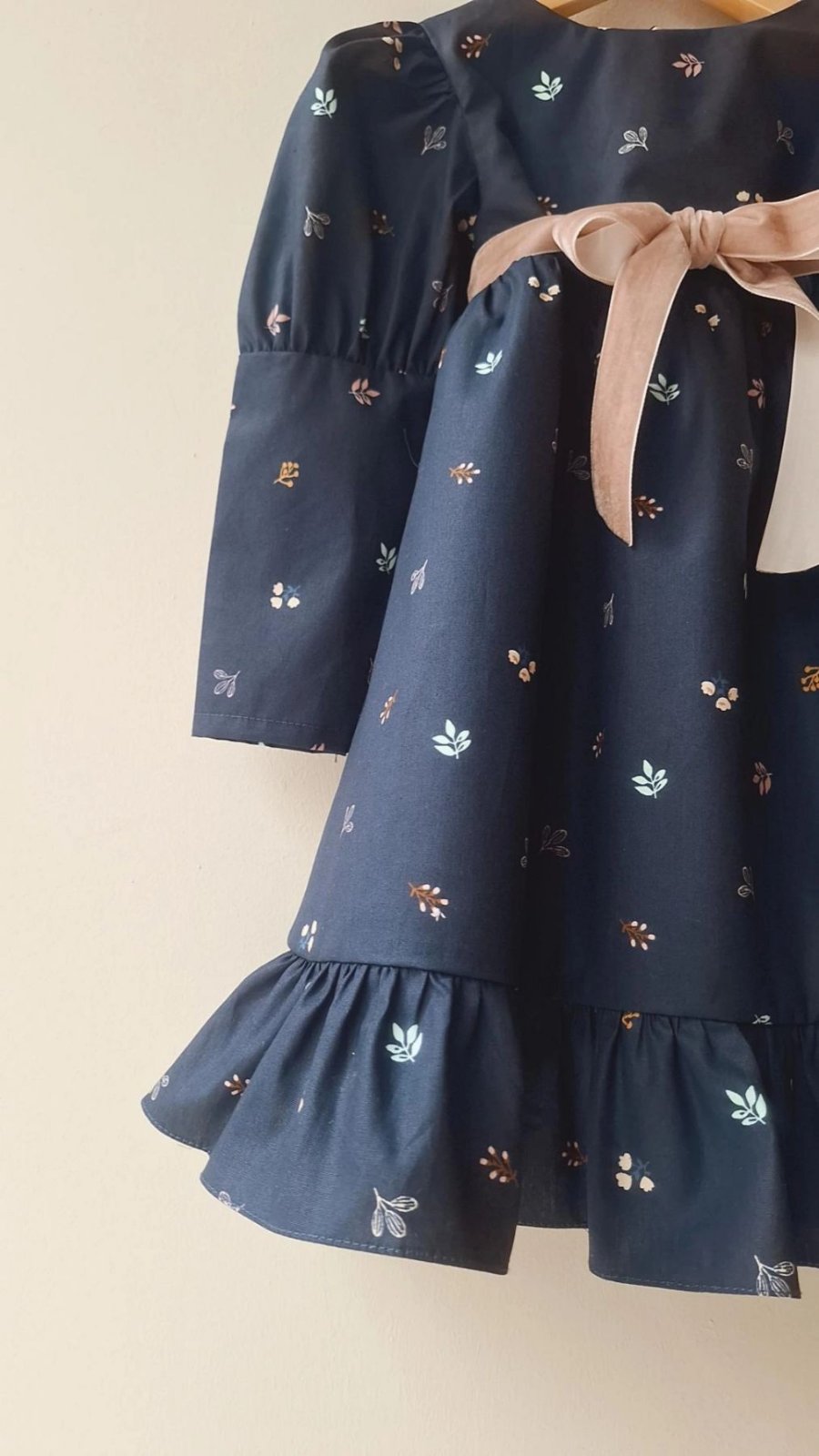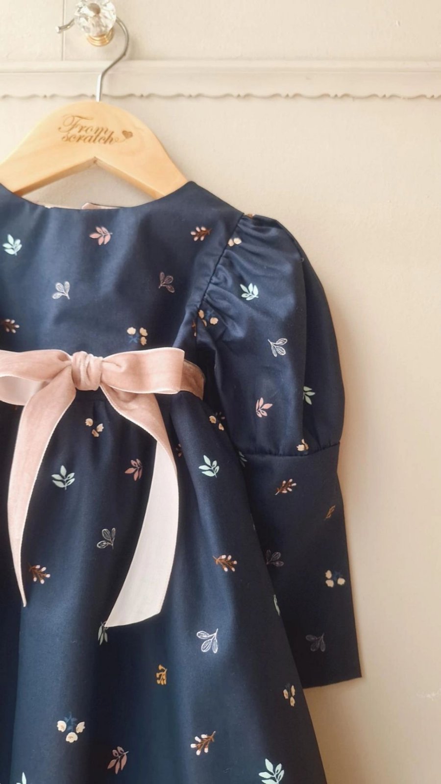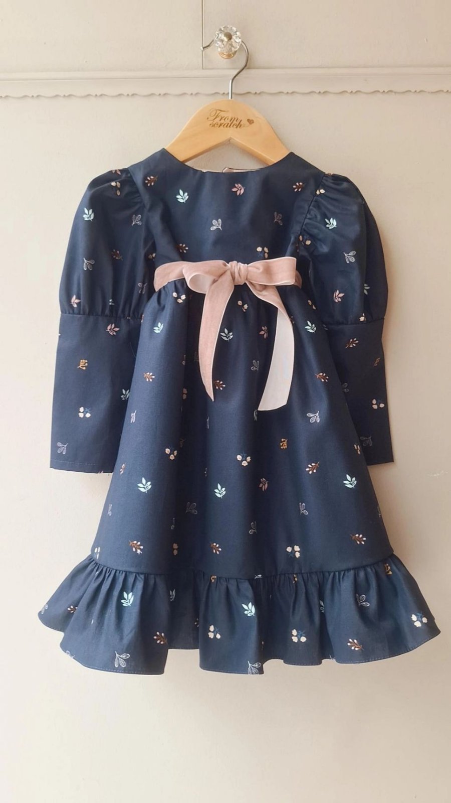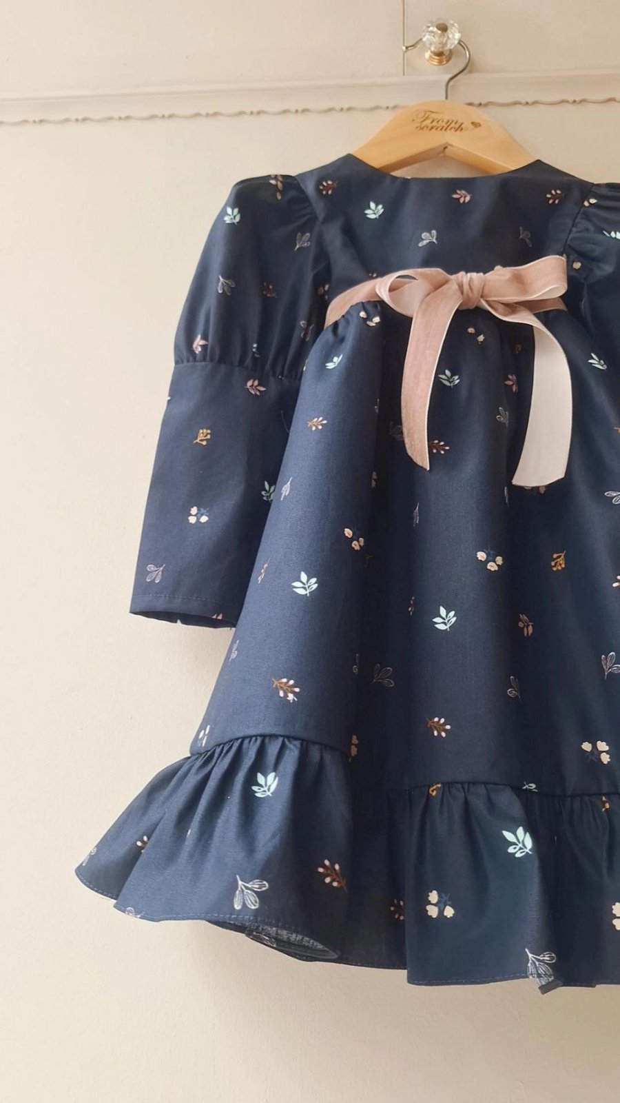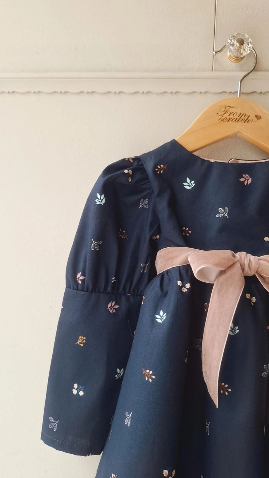 Το Blue Blossom Dress είναι ένα μοναδικό φόρεμα που συνδυάζει κομψότητα και γλυκύτητα. Σε βαθύ navy blue τόνο, διακοσμημένο με λεπτά λουλουδάτα μοτίβα και βελούδινη ροζ κορδέλα στη μέση, προσφέρει έναν αέρα ρομαντισμού και φινέτσας. Η μαλακή υφή και η άνετη γραμμή το καθιστούν ιδανικό για γιορτές, γενέθλια και ξεχωριστές στιγμές. Από τη From Scratch, για μικρές δεσποινίδες που αγαπούν τη λεπτομέρεια.