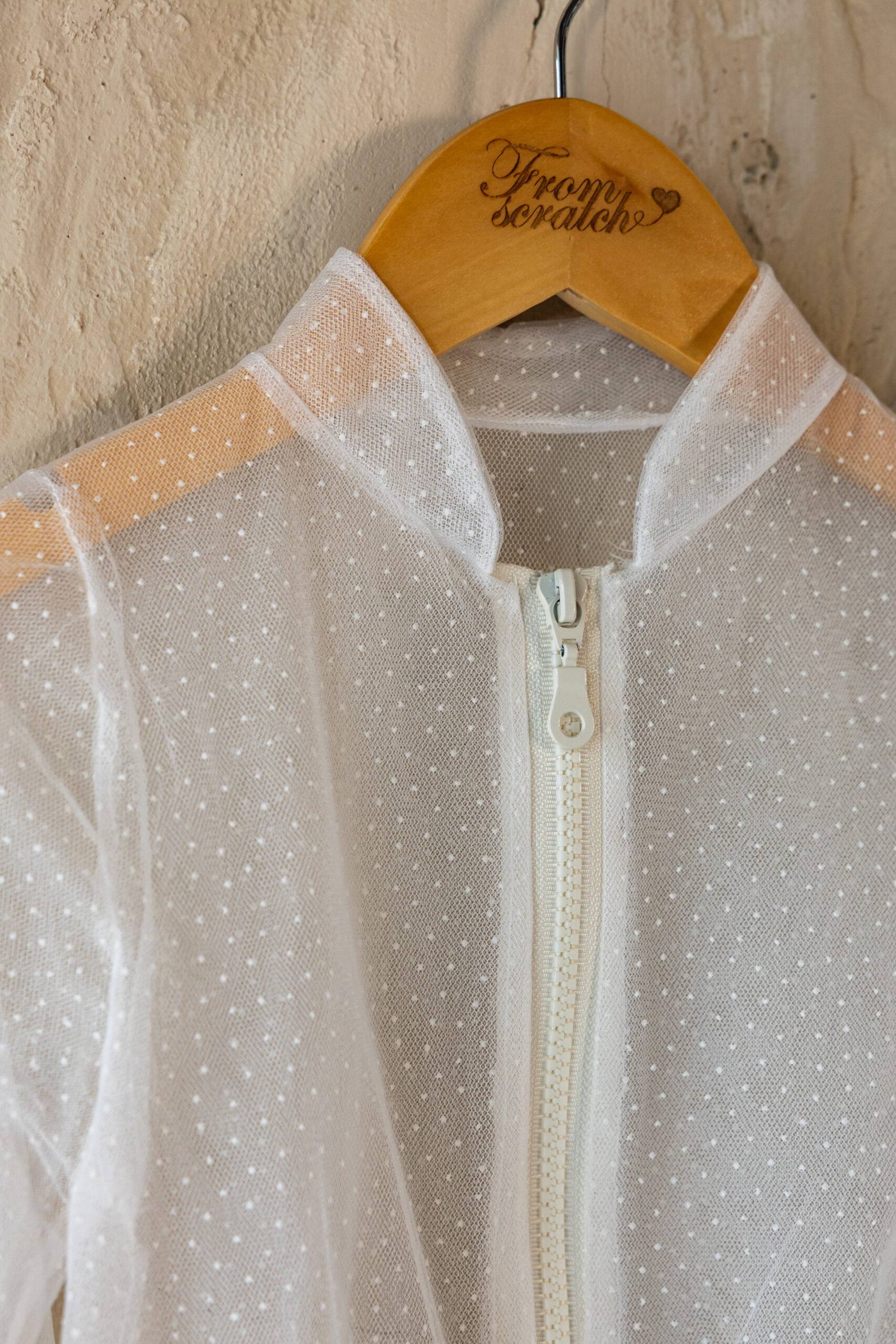 ✔️ Αέρινο τούλι με πουά σχέδιο για ρομαντικό look.