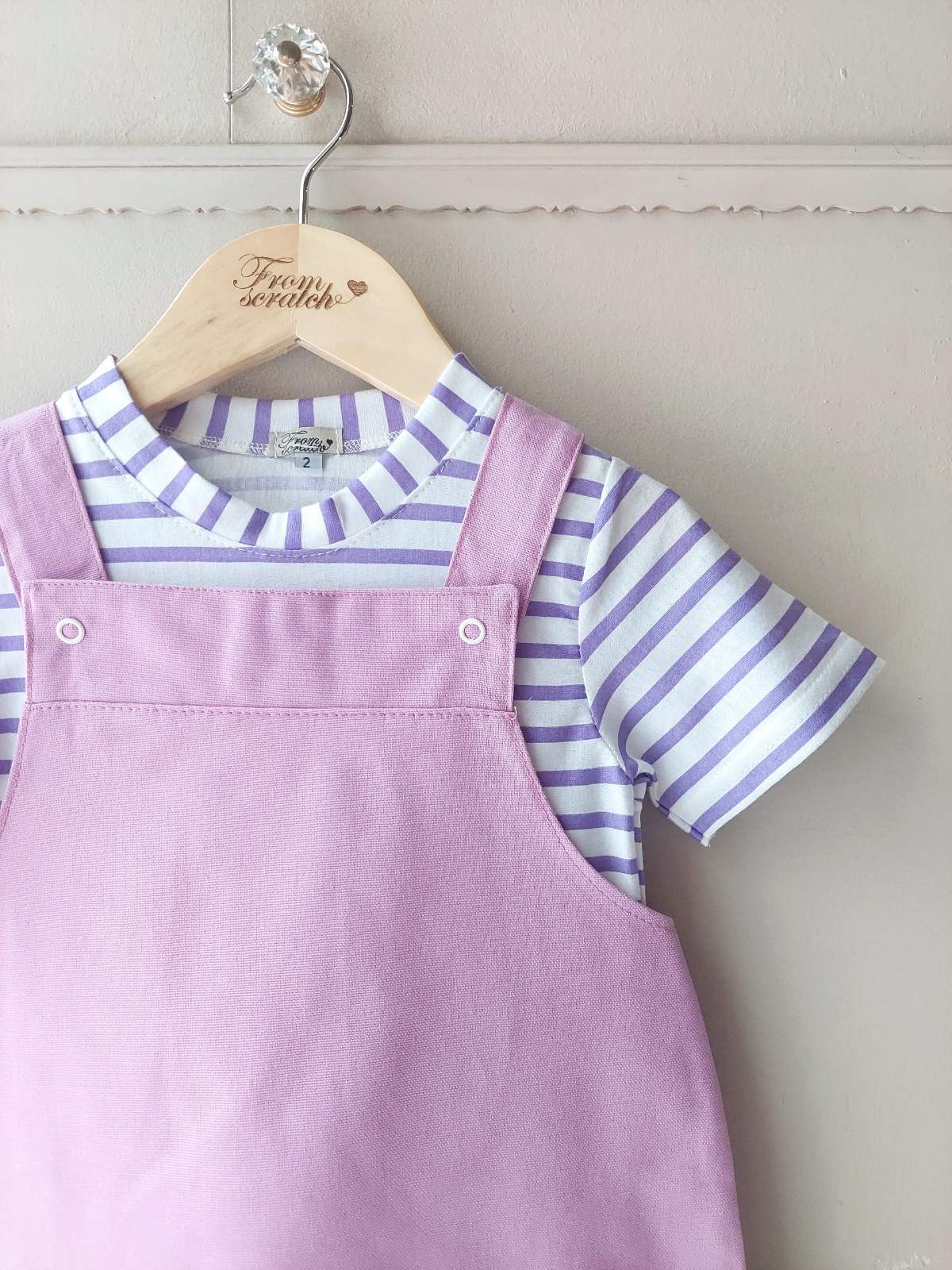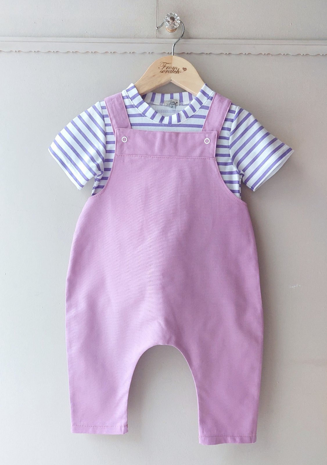 Αυτή η σαλοπέτα είναι ό,τι πιο γλυκό για τα μικράκια μας! Σε φωτεινή λιλά απόχρωση και με ριγέ κοντομάνικη μπλούζα,