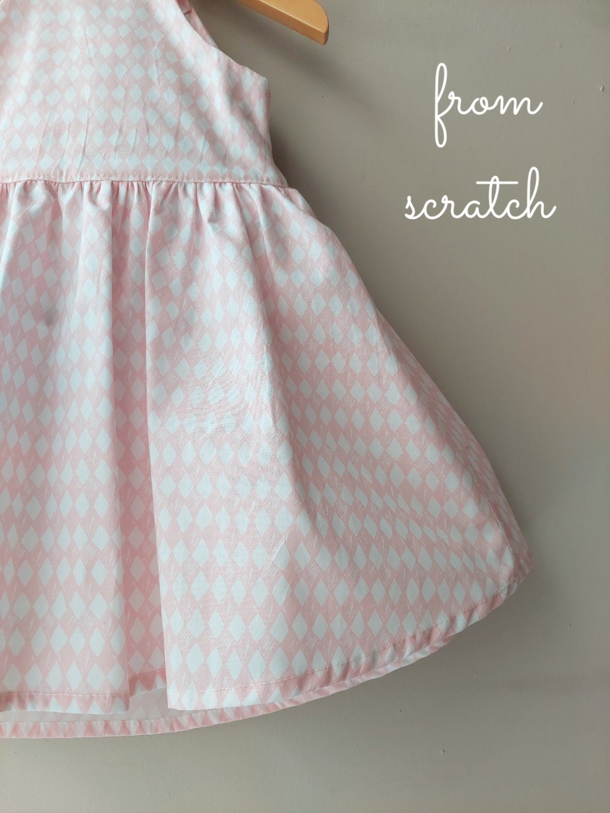 Όλη η πλατούλα είναι έξω ενώ βολανάκια αγκαλιάζουν τους ώμους και μια ελαφριά ουρίτσα σχηματίζεται στα πόδια.