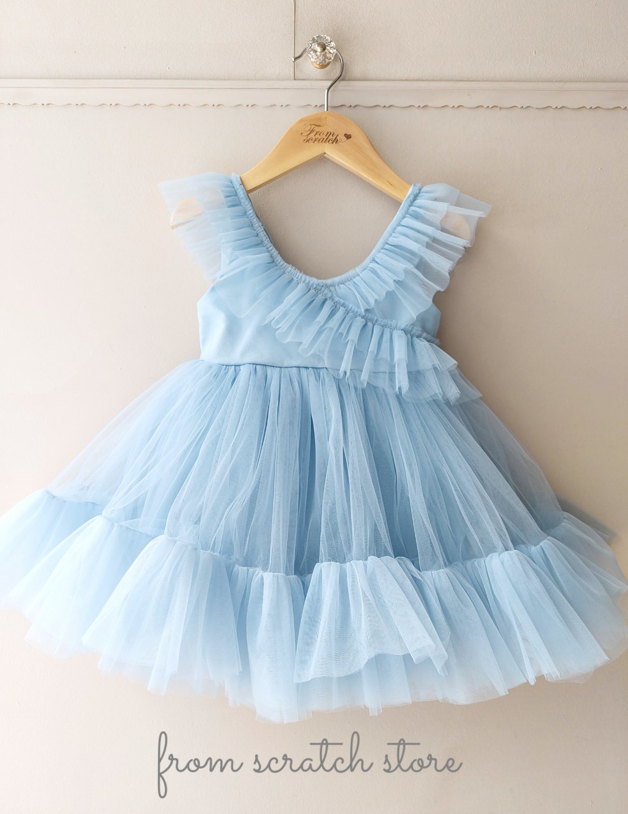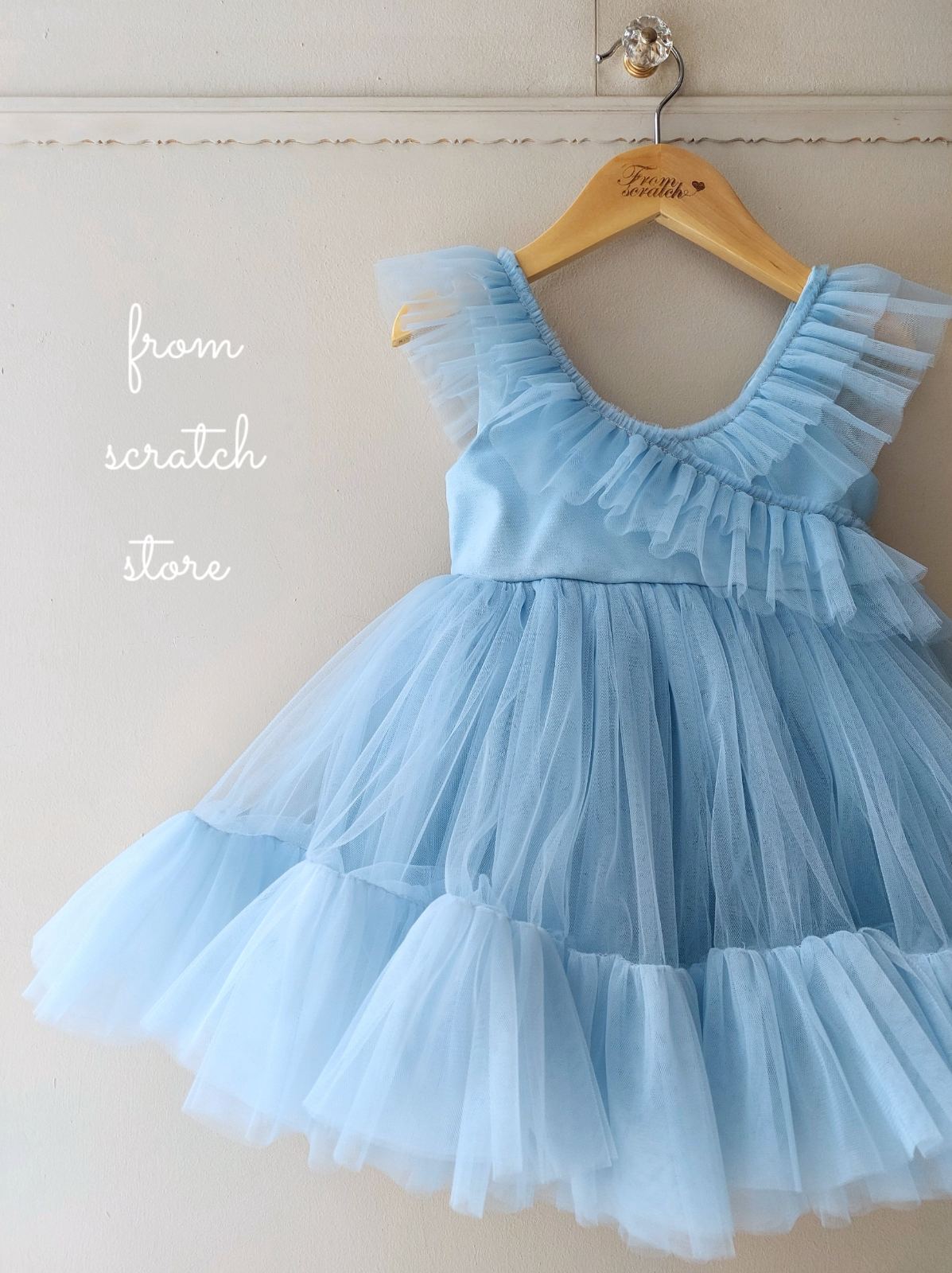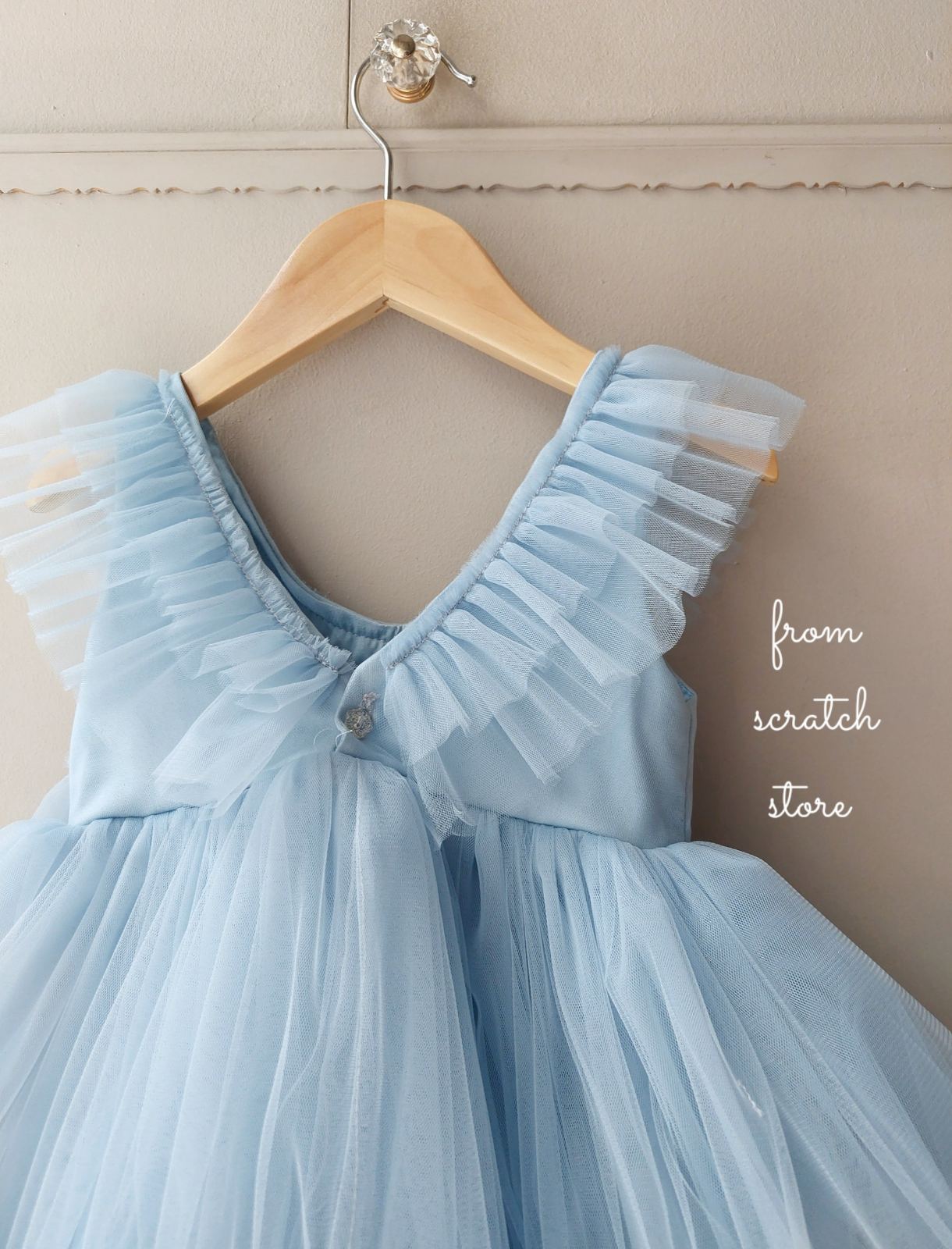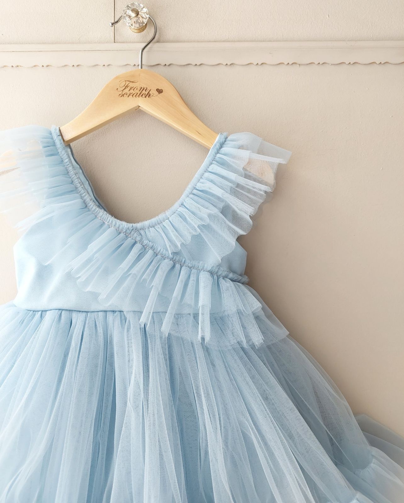 Σε μαγευτικό γαλάζιο χρώμα, με εντυπωσιακές στρώσεις από απαλό τούλι και