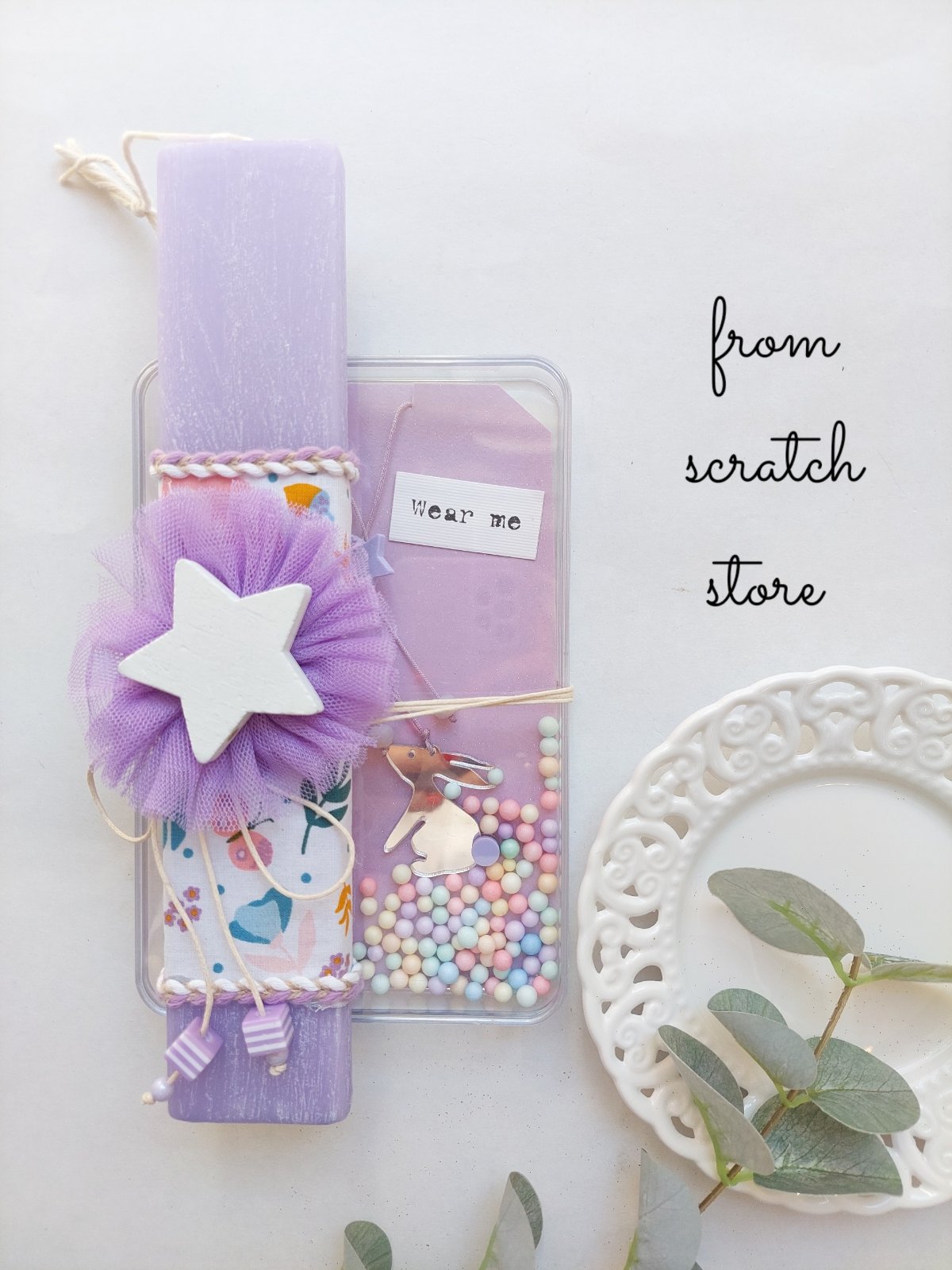 ✔️ Χειροποίητη λαμπάδα σε λιλά απόχρωση