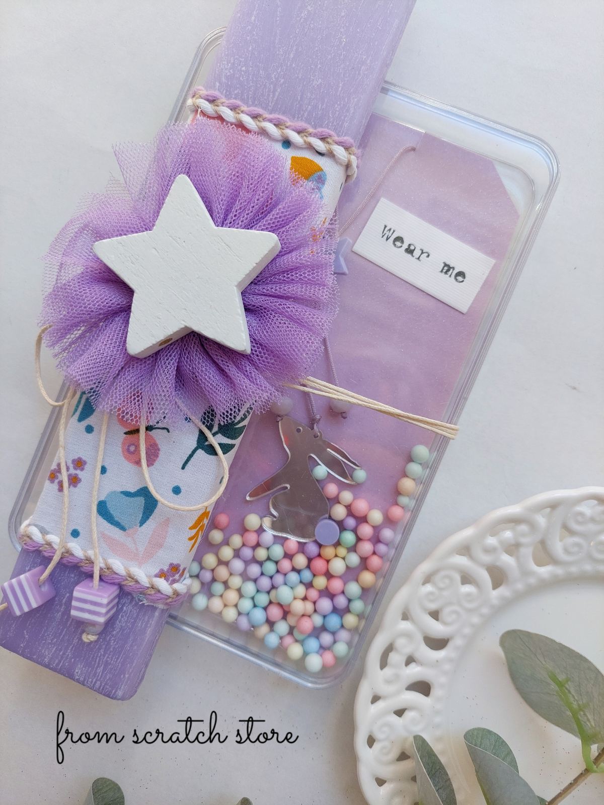μια χειροποίητη λαμπάδα 25 εκατοστών σε απαλές λιλά αποχρώσεις και ένα αξιολάτρευτο