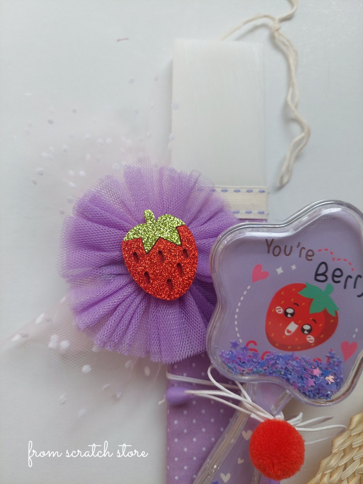 ✔️ Στέκα μαλλιών με τούλι και χαριτωμένο clip φραουλίτσα με γκλίτερ
