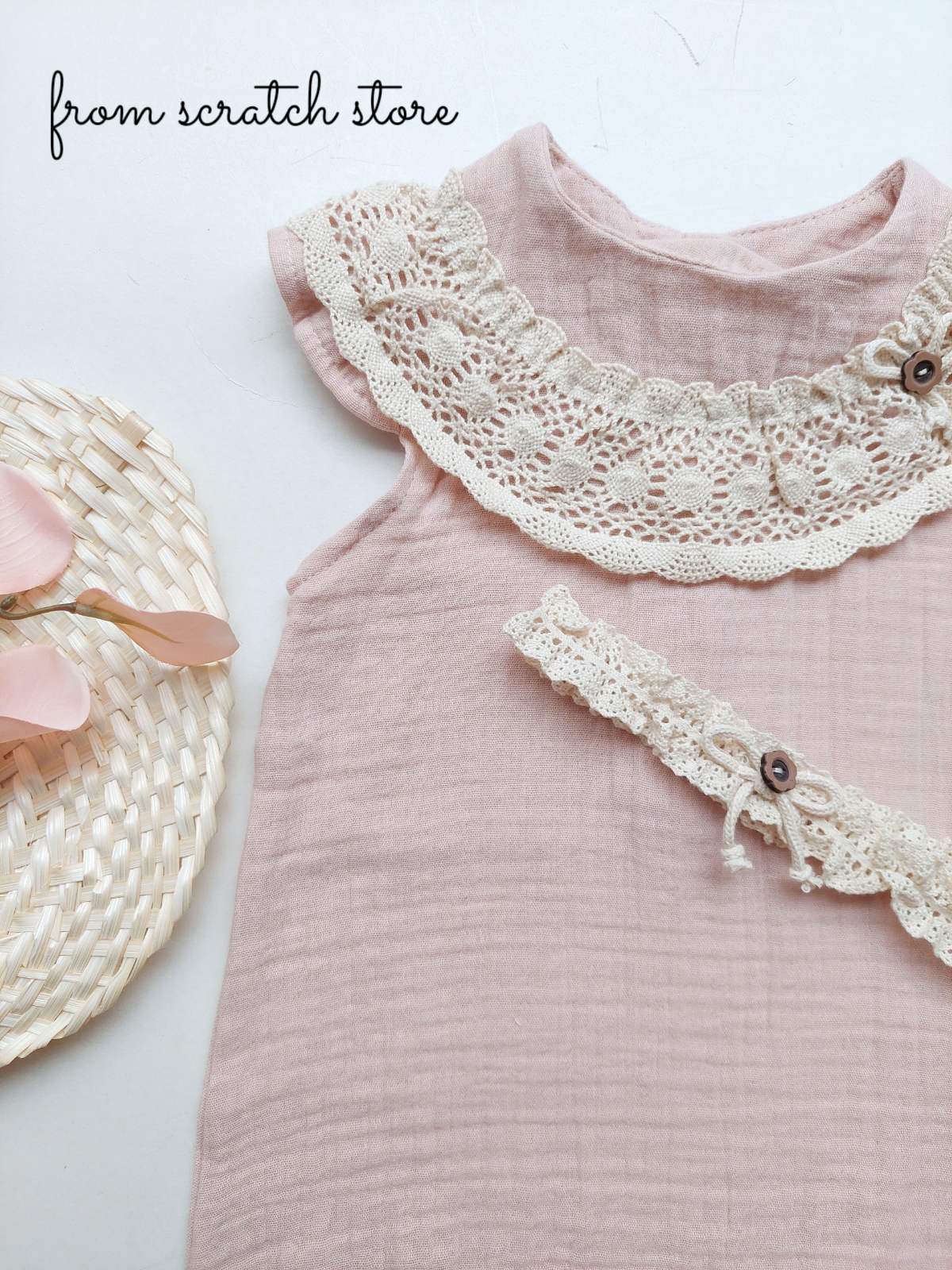 Λινή φόρμα Lace & κορδέλα