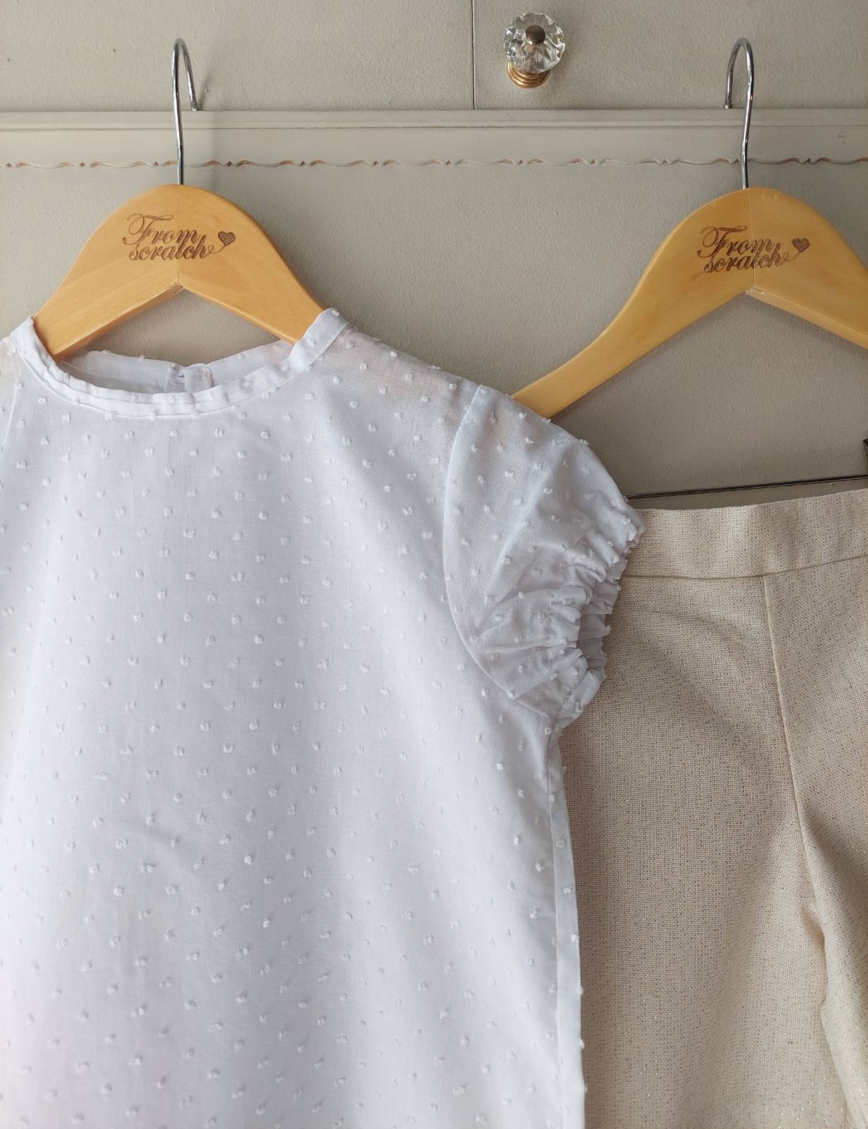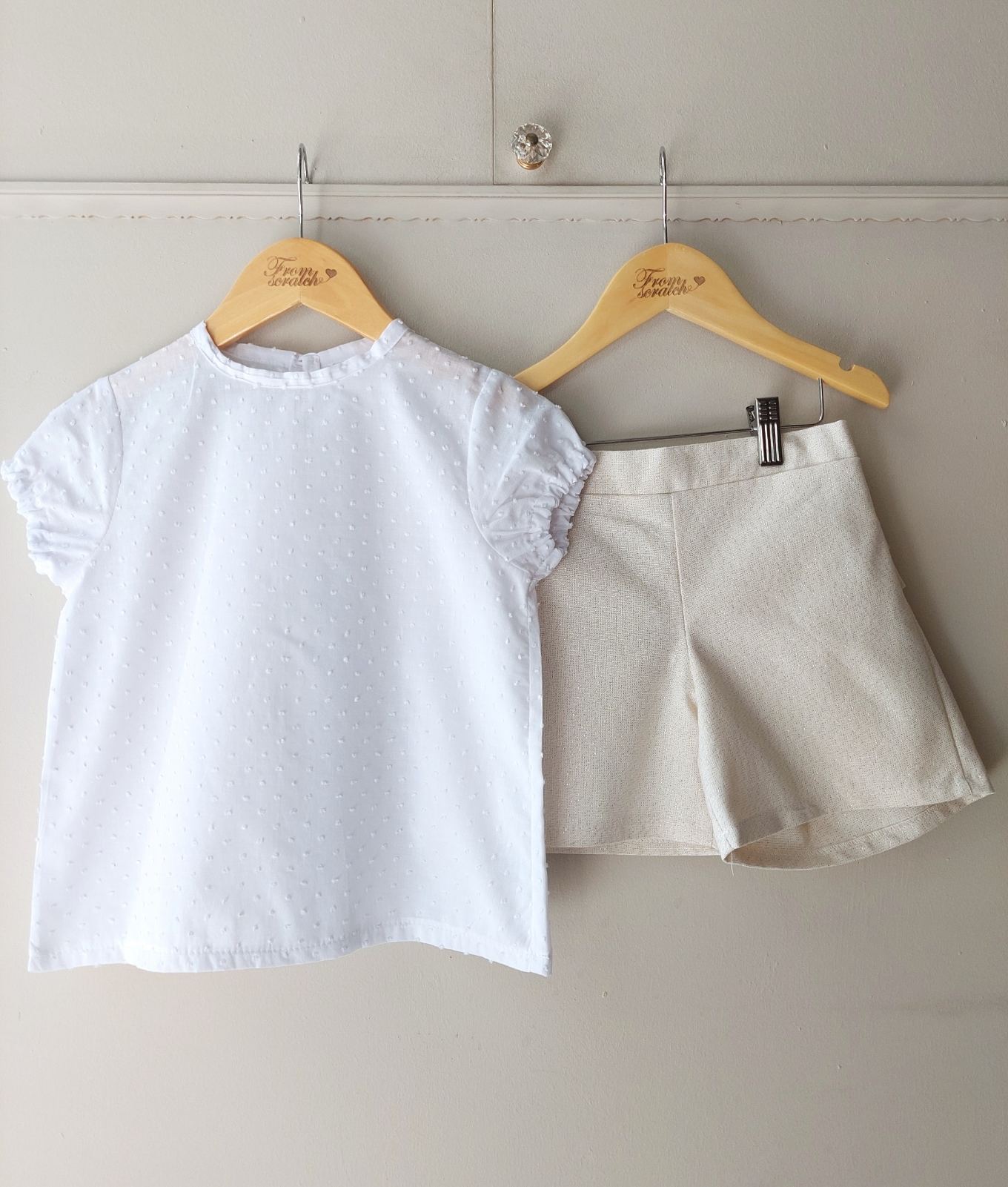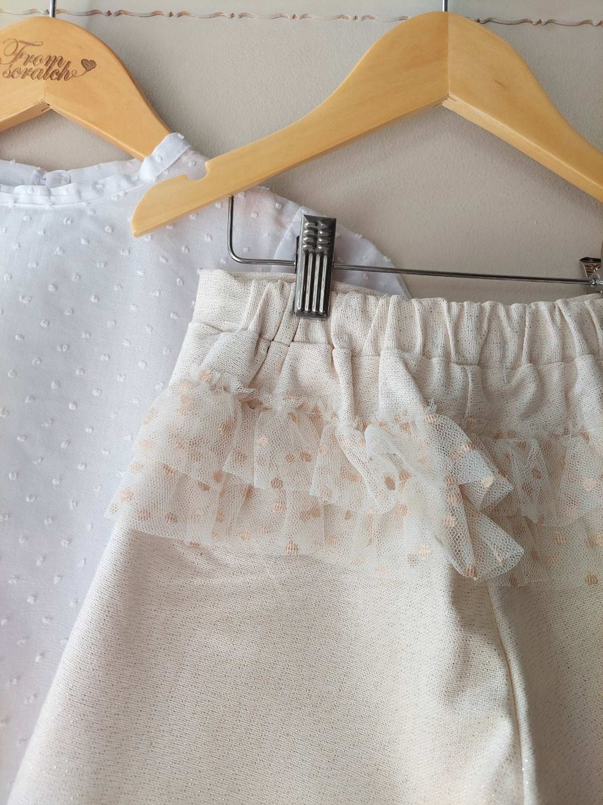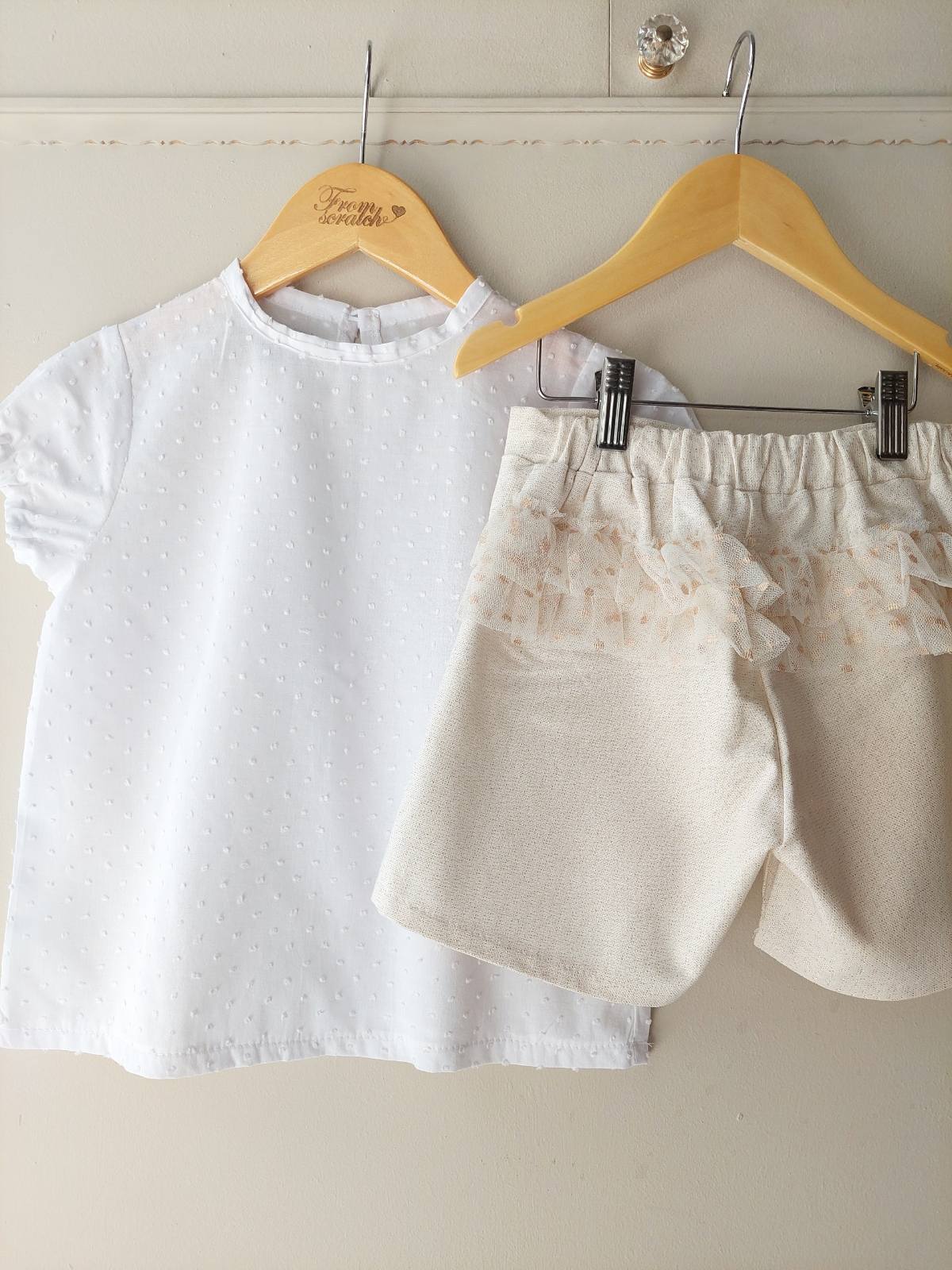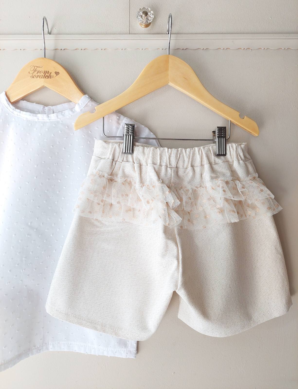 Το σορτσάκι είναι μπεζ με χρυσοκλωστή και ένα διακριτικό βολάν από τούλι στο πίσω μέρος!!!