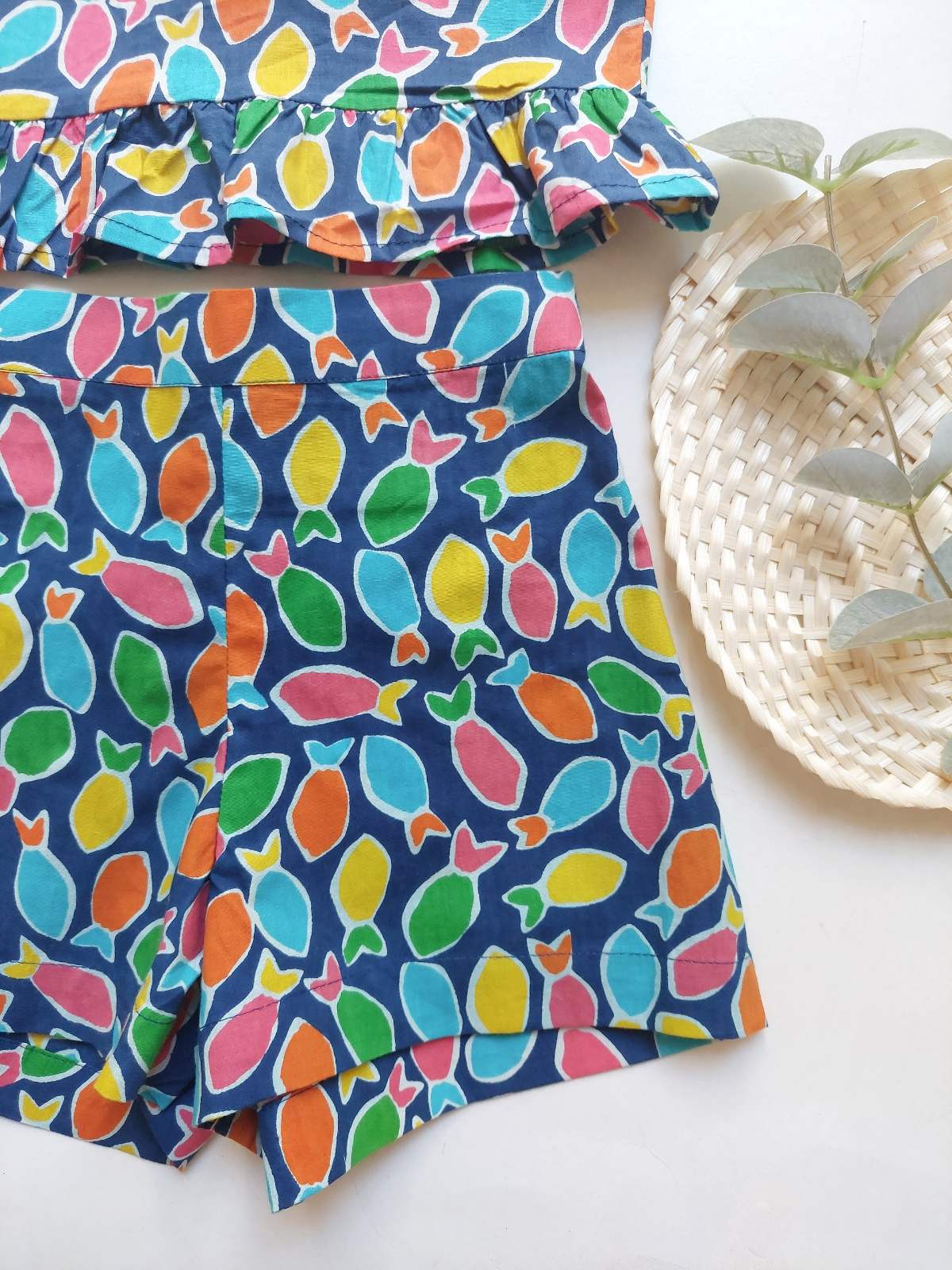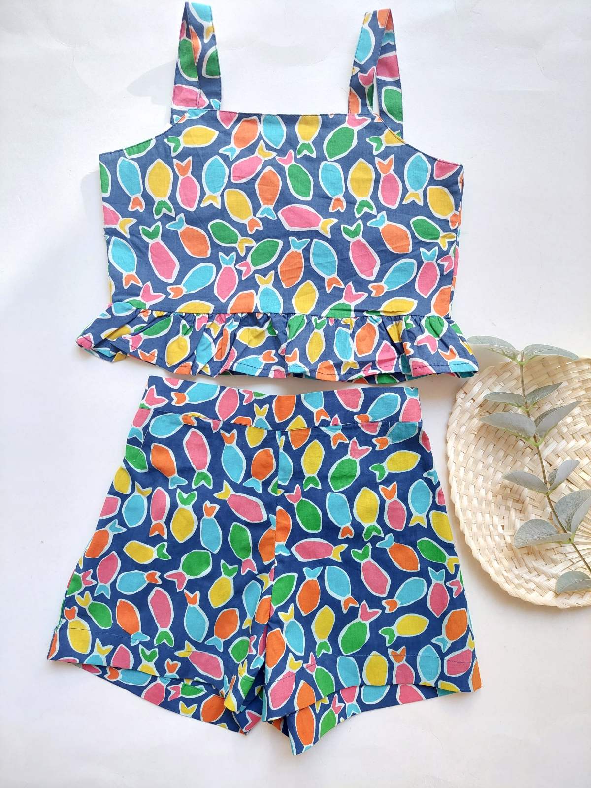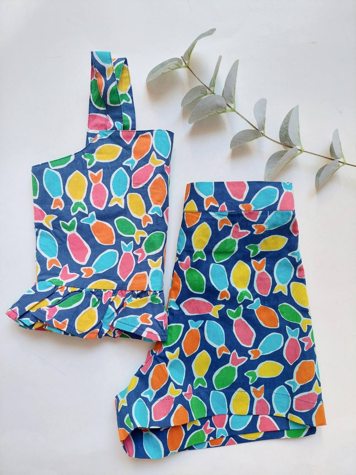 Σας αρέσουν τα ψαράκια??? Αν ναι σας έχουμε σετάκι με τοπάκι και σορτσάκι !!! Άνετο από 100% βαμβακερή ποπλίνα… εύκολο ντύσιμο για όλες τις ώρες και γεμάτο χρώμα για να μας φτιάχνει τη διάθεση!!!