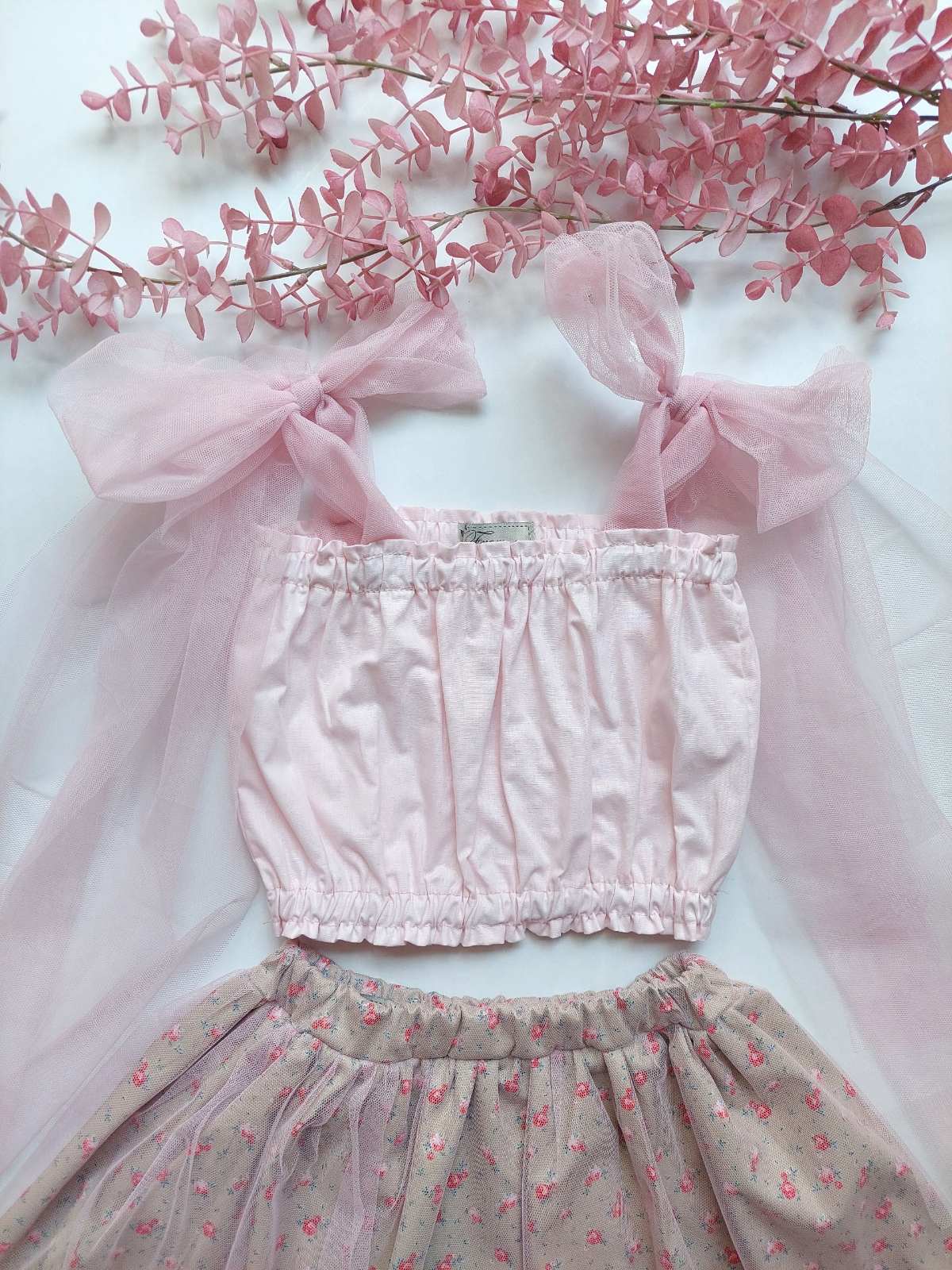 Και από πάνω croc top ροζ φυσικά με λαστιχακι πάνω κάτω για να έχει την τέλεια εφαρμογή.και δένει στους ώμους με ροζ τούλι.τα έχει όλααααα και σε κερδίζει με την πρώτη ματιααααα