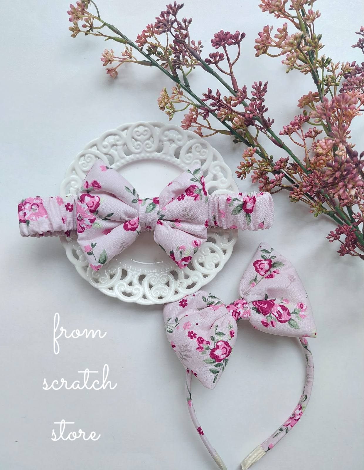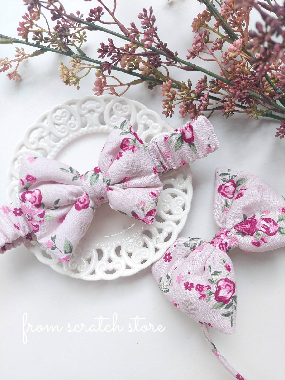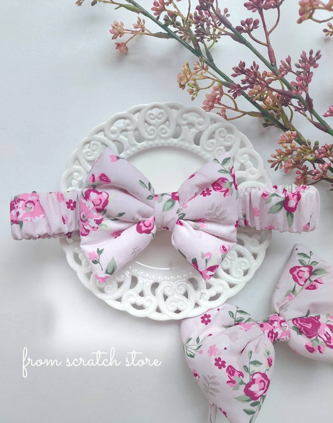 Περιλαμβάνει μία υφασμάτινη στέκα και μία ελαστική κορδέλα με φιόγκο σε ροζ φλοράλ μοτίβο.