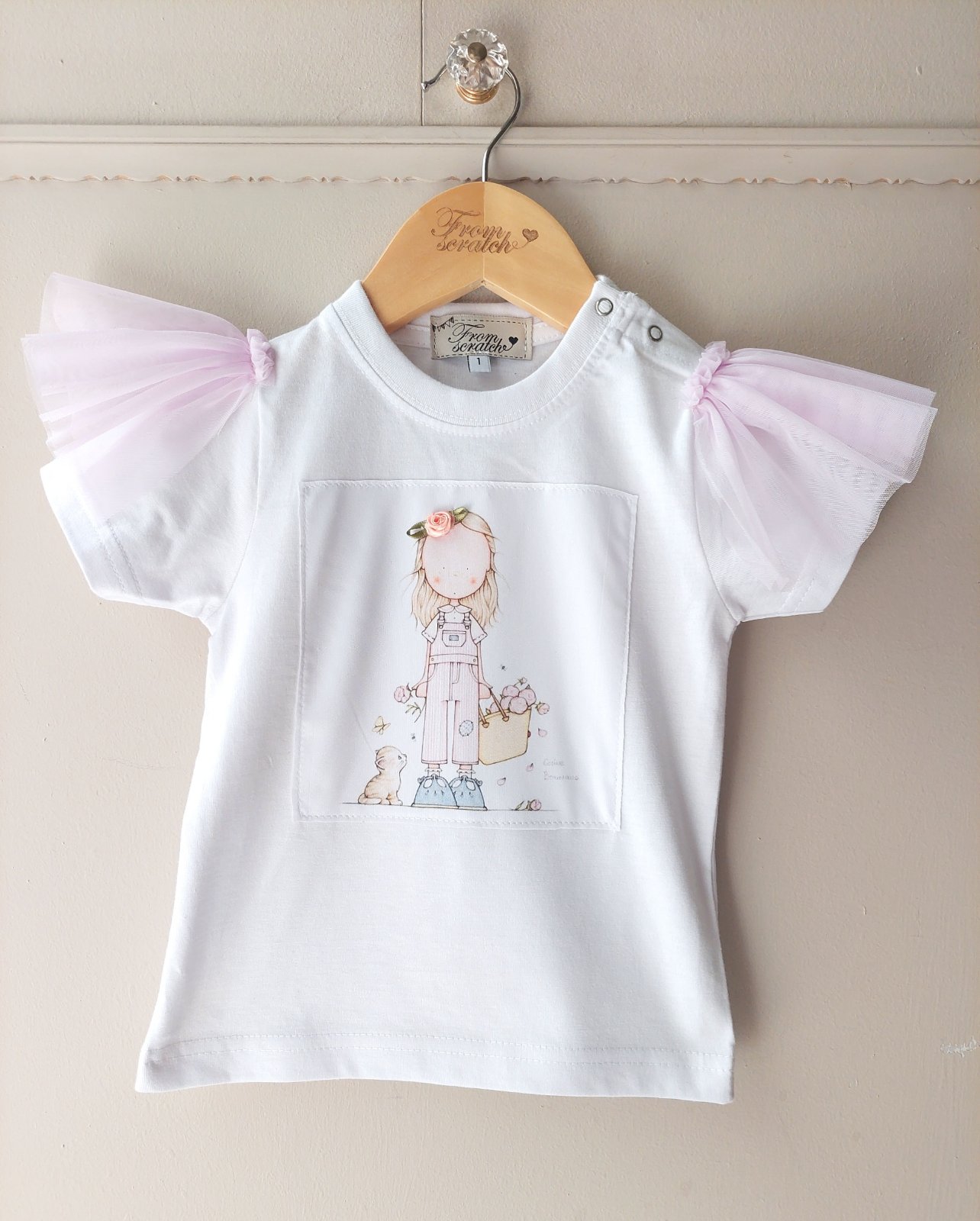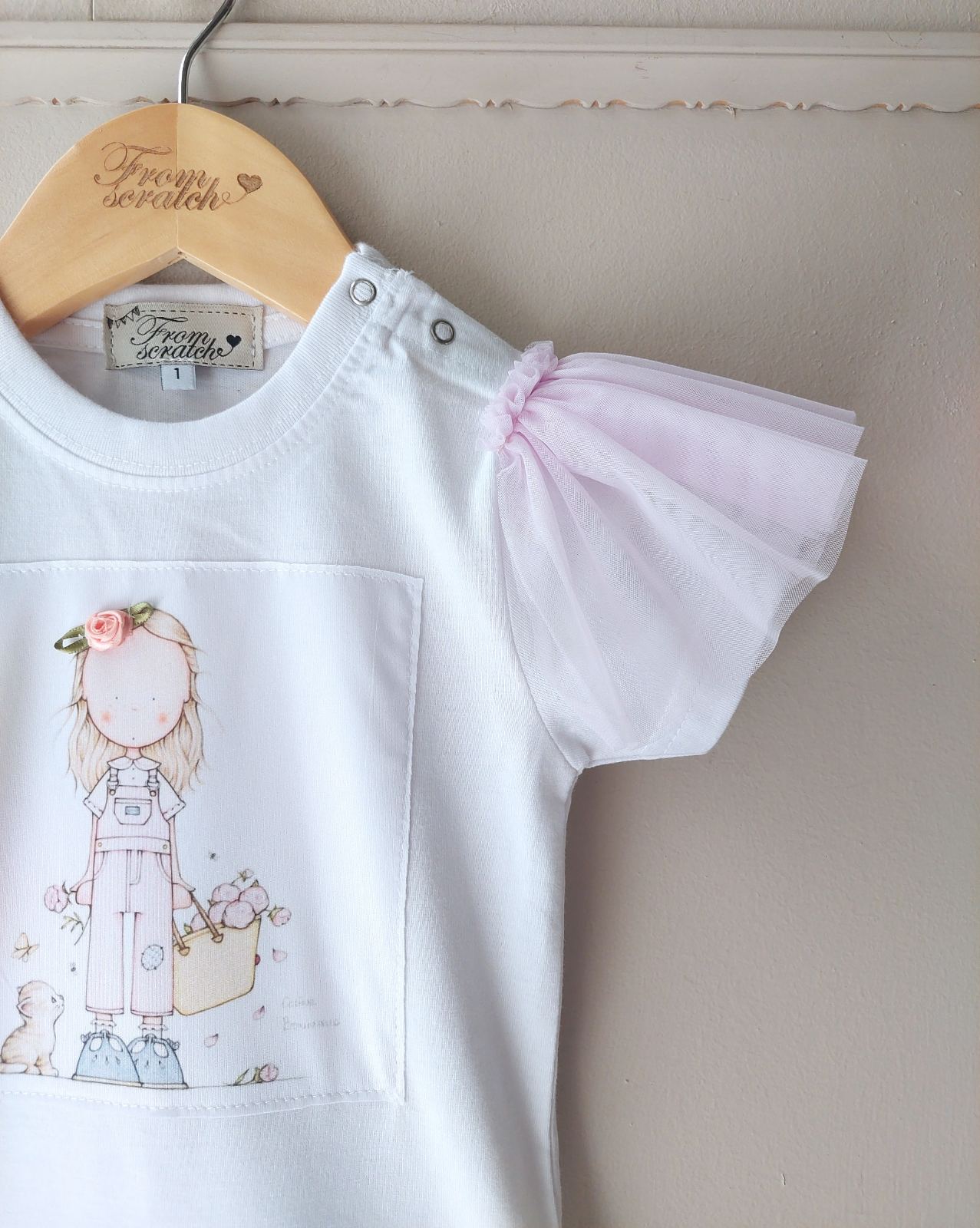 Ένα τέλειο tshirt για όλες σας τις εμφανίσεις με υπέροχη τούλινη λεπτομέρεια στο μανίκι!!!